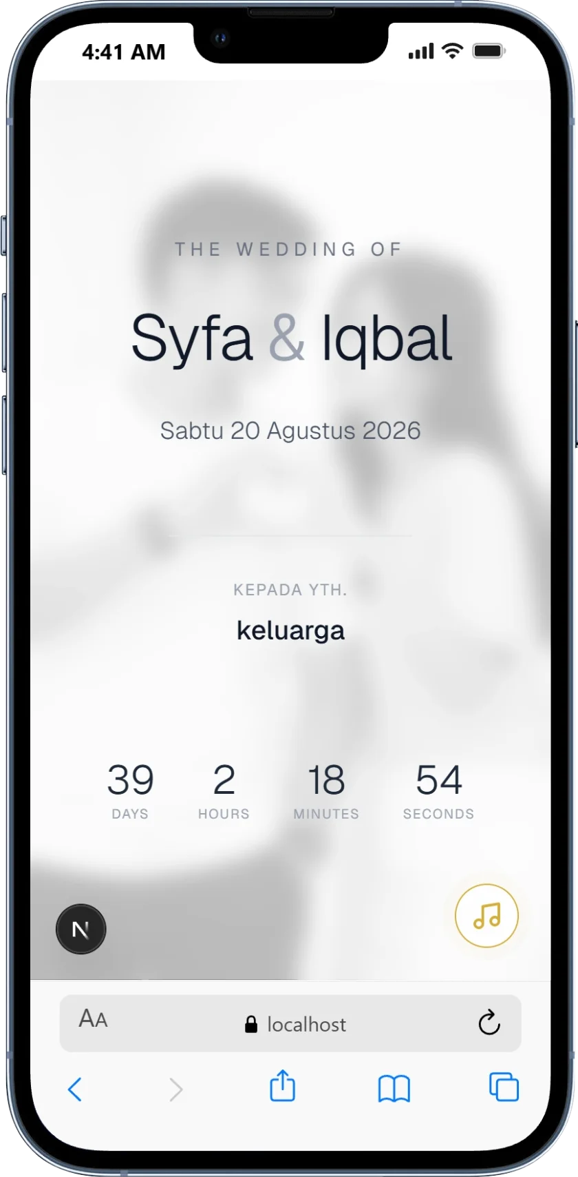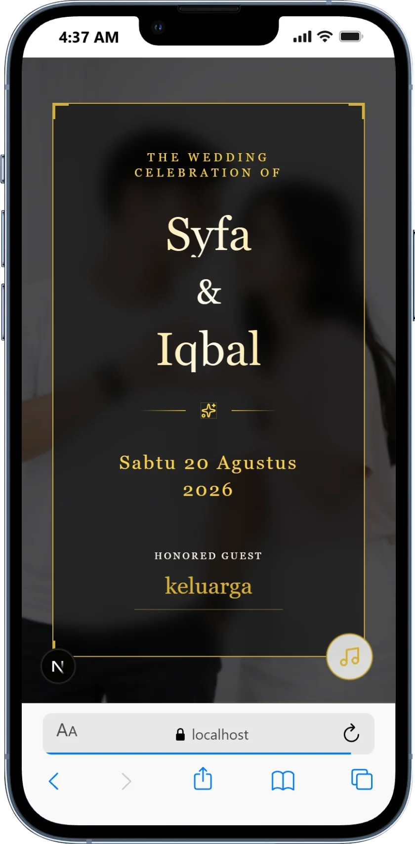 Undangan Anda tampil mempesona di layar smartphone tamu undangan.